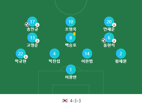 걍... 사기...ㅋㅋㅋㅋ 이 멤버는 유럽이랑 해야 돼요 진짜!! 아시아에서 우리 나라를 만나는 국가가 불쌍할 정도의 압도적인 선수 명단입니다... 이런 팀을 어떻게 이기냐고... 싱가포르전 시작전에 부상이 발견된 홍현석 선수말고는 아직 부상 소식이 더 없기 때문에 중국전에서도 선발명단은 비슷할 것으로 보여집니다! 이번 경기에서는 전반에 빨리 게임 터트려서 후반 20분 정도에는 로테이션을 싹 돌려서 선발 선수들의 부상 방지 조치가 있었으면 좋겠네요!