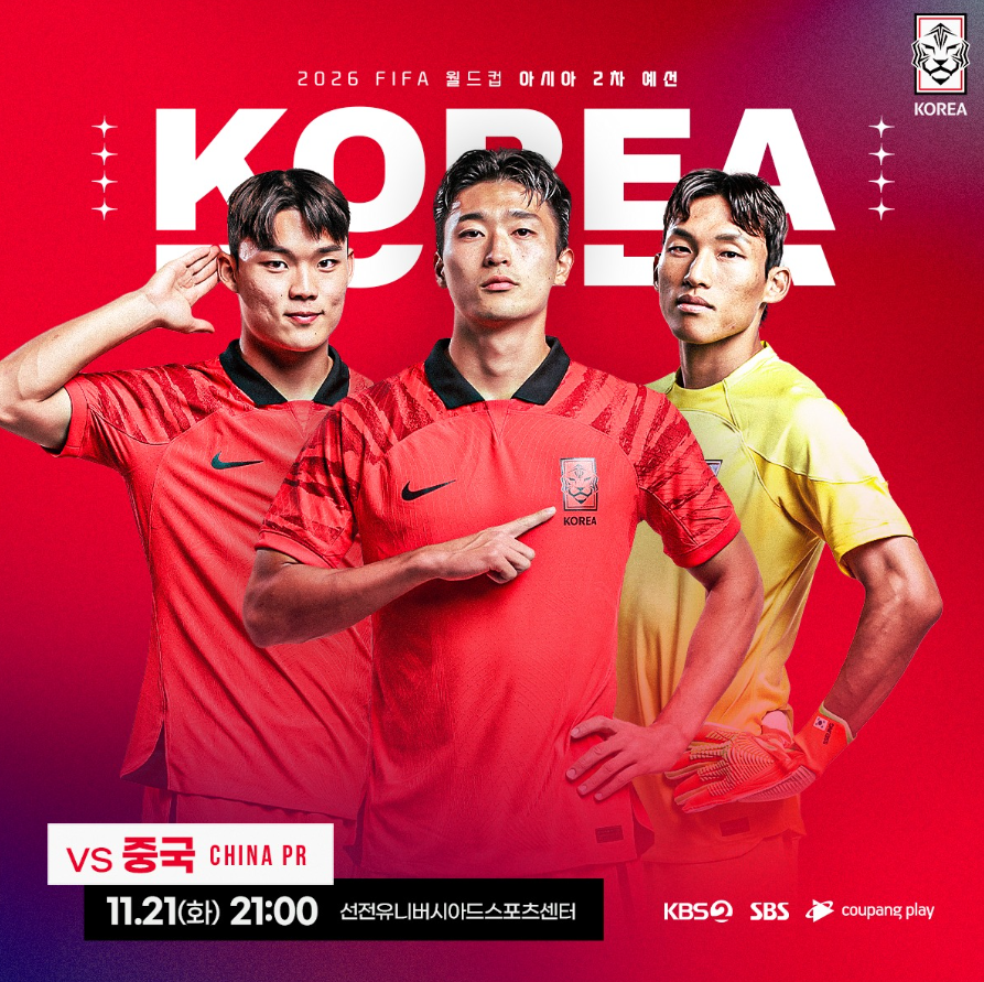 월드컵 2차 예선의 2번째 경기! 중국과의 경기입니다! 지난주 목요일에 싱가포르를 5:0으로 완파한 대표팀은 현재 기세가 정말 좋은데요! 중국과의 경기도 압도적인 경기력이 예상됩니다..! 한국 중국 중계 보는 곳과 경기 시간 알려드릴게요!