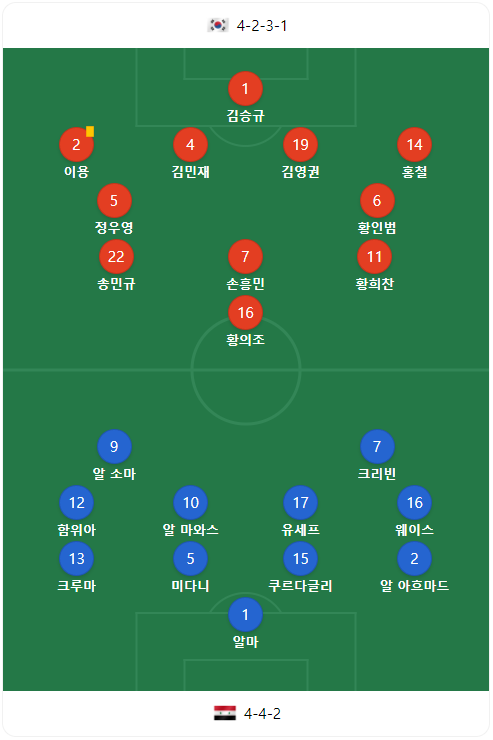 한국 2 : 1시리아