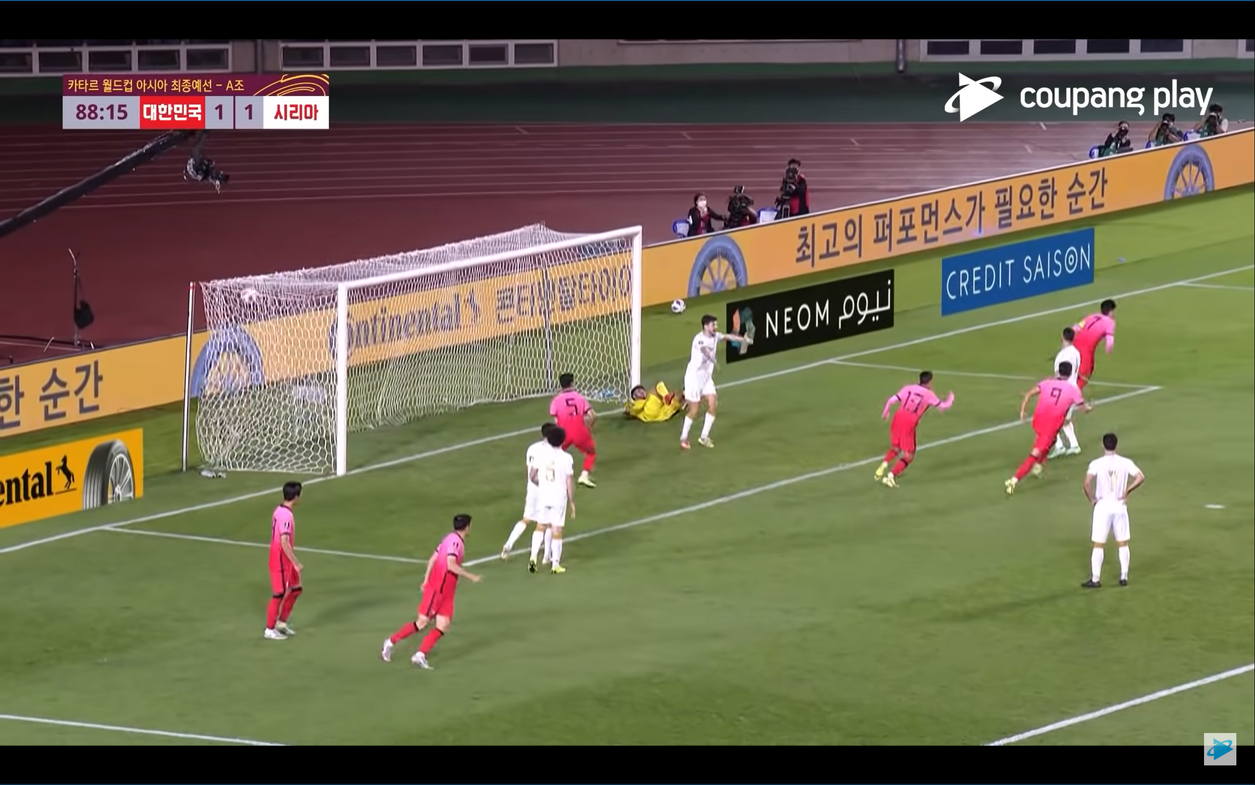 와.. 진짜 동점골 먹혔을때