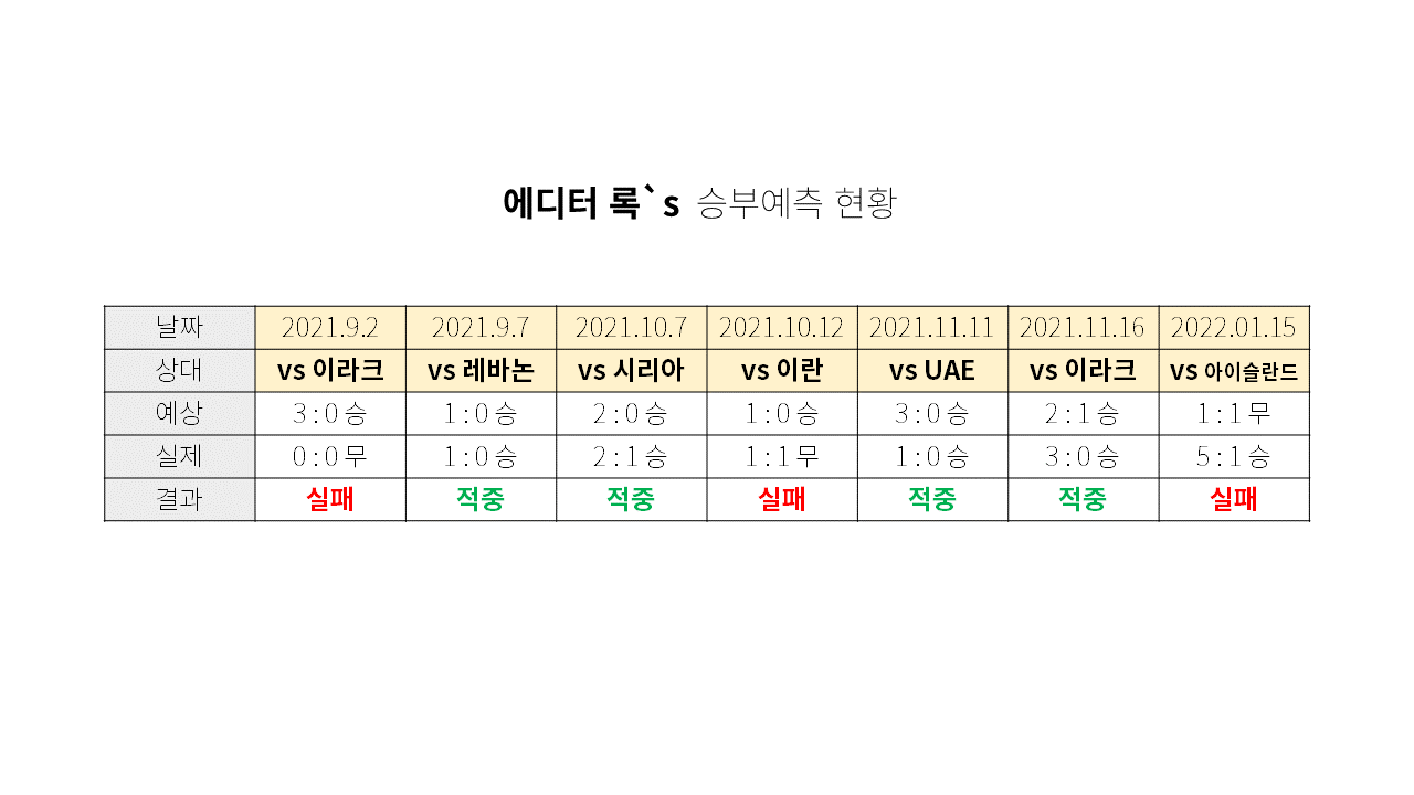 아이슬란드 전에서 국내파의 무서움을 확인했으니.. 이번엔 과감하게 6:0승 예상합니다!