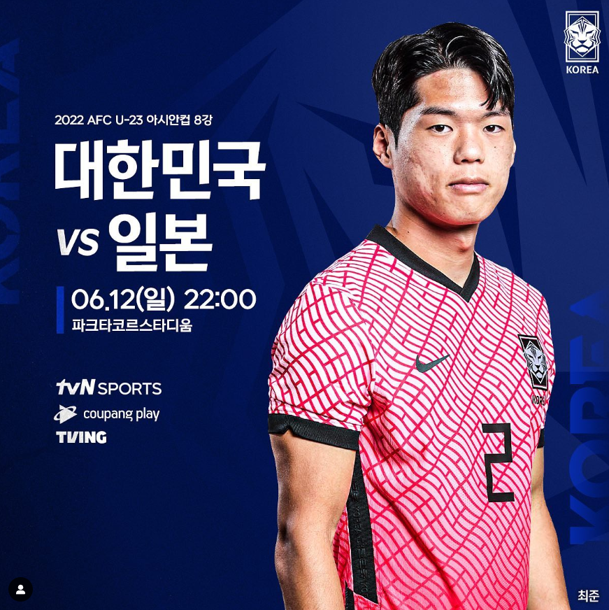 23세 이하 축구국가대표팀이 아시안컵에서 조별예선은 2승1무의 조 1위로 통과하고 8강에 안착했습니다! 그런데,, 8강 상대가 무려 일본?! 한일전은 질 수 없죠!! 우선 경기 정보 알려드릴게요~