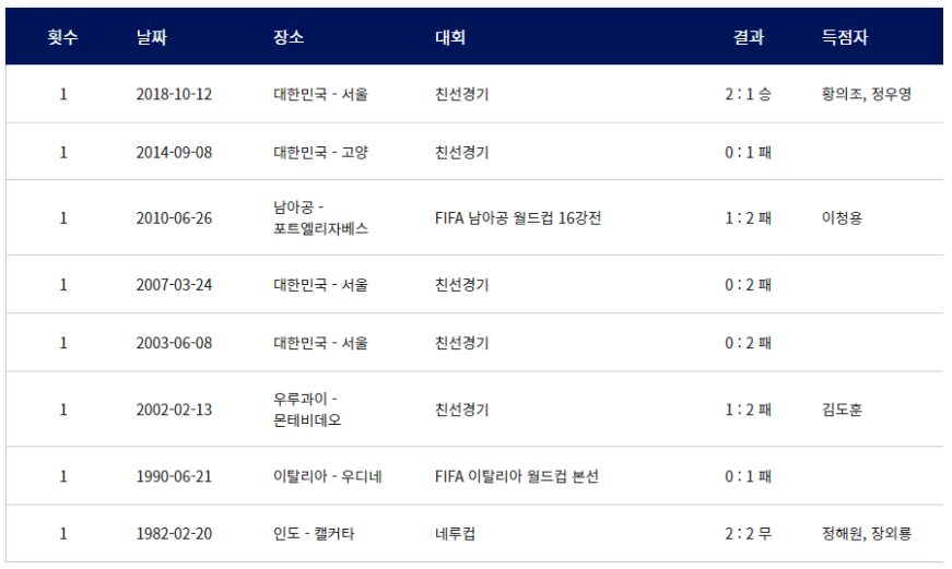 [한국 우루과이 상대 전적]